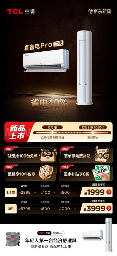 配合京东的平台流量、物流服务与用户运营能力,这款产品在预售阶段已显现出强劲的关注度。随着12月31日晚8点首发期的临近,TCL真省电Pro二代能否真正成为年轻人追捧的“性价比神机”,还需市场进一步检验。但可以预见的是,在TCL与京东的联合推动下,这款集高配置、强节能、优体验于一身的产品,已为年末空调市场注入了新的活力与期待。